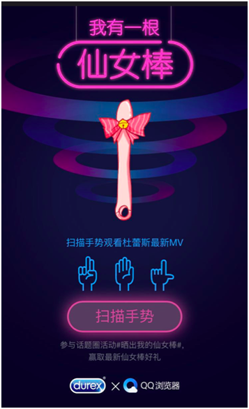 QQ瀏覽器和杜蕾斯的跨界營銷活動,通過巧妙的將QQ瀏覽器的AR"黑科技"下拉掃一掃功能與杜蕾斯的情趣產品深度綁定,同時借助雙方在話題互動領域的優(yōu)勢,最終將營銷效果和創(chuàng)造的商業(yè)價值提升到了全新的高度。據了解,基于AR技術的“下拉掃一掃”功能是此次營銷中用戶參與的第一步,其改變了用戶被動接受營銷活動信息的方式,取而代之的是用好玩有趣的互動方式讓用戶主動參與;其次,QQ瀏覽器基于騰訊瀏覽服務(TBS)的WebAR能力,全面支持用戶從QQ瀏覽器分享活動到微信和手機QQ等社交平臺,完美滿足了用戶的社交心理需求,此次活動共吸引了近130萬人參與。
