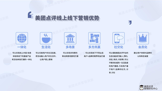 作為全球領(lǐng)先的生活服務(wù)電商平臺,美團(tuán)點(diǎn)評提出的“Co-Line Marketing”線上線下一體化營銷,從理念到產(chǎn)品矩陣已經(jīng)成型。線上線下一體化、生活化、社交化、會員化、跨場景、全流程,不僅是美團(tuán)點(diǎn)評營銷的優(yōu)勢,更是賦能品牌,跟品牌一起攜手共贏的關(guān)鍵利器。