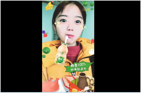 對(duì)著屏幕只要做出張口的動(dòng)作,就來(lái)一瓶伊利暢意100%乳酸菌,好像視頻能夠知道你飽餐一頓之后,要促進(jìn)一下消化;