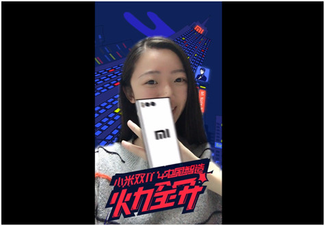 背景替換成了高樓大廈,身處在樓下的你,只需要張開(kāi)手就能變出一臺(tái)小米手機(jī)。這是小米在小咖秀上,造勢(shì)雙11大促的全新玩法;