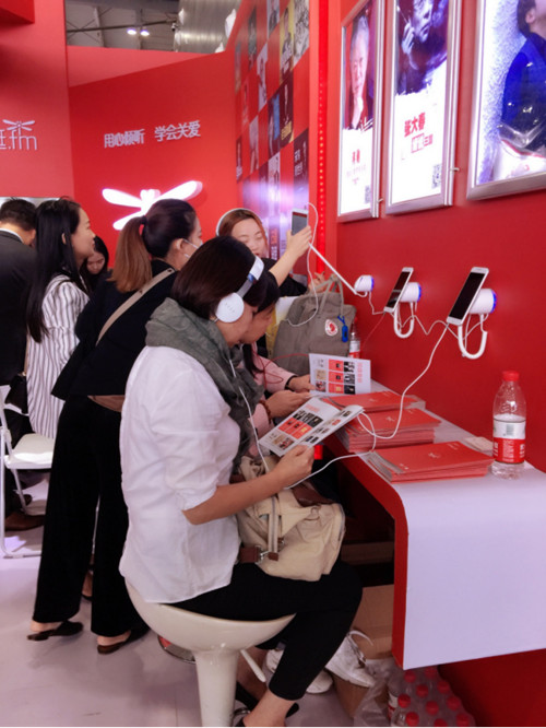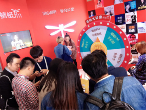 蜻蜓FM展區(qū)在滿足來賓業(yè)務(wù)咨詢、行業(yè)交流的同時,增加了“蜻蜓FM精品內(nèi)容試聽“、“以音傳情達意 說出你的freestyle“、 “幸運轉(zhuǎn)盤抽獎”、“大咖朋友圈點贊合影互動“等游戲環(huán)節(jié),觀眾通過試聽、參與互動,感受到了蜻蜓FM作為一個移動音頻平臺,給其帶來的“隨時隨地?想聽就聽”的新生活方式。