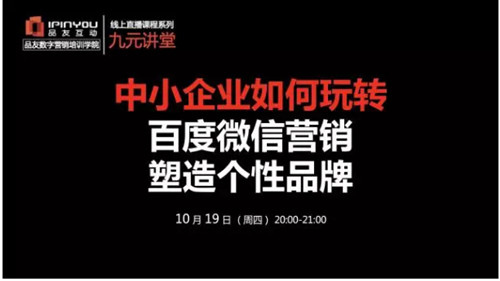 10月19日(周四)晚8:00,營(yíng)銷老司機(jī)「九元講堂」,帶你揭開網(wǎng)絡(luò)營(yíng)銷與實(shí)際轉(zhuǎn)化間的面紗~