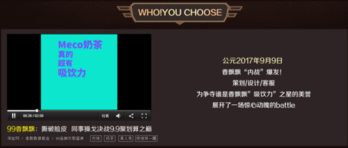 策劃站隊新晉“網(wǎng)紅奶茶”Meco牛乳茶,客服為美味升級的十年經(jīng)典杯發(fā)聲,設(shè)計傾心于“清純擔(dān)當(dāng)”原汁奶茶。這三名不同風(fēng)格的員工撕破臉皮,燃燥開唱,發(fā)起了香飄飄自己的freestyle。