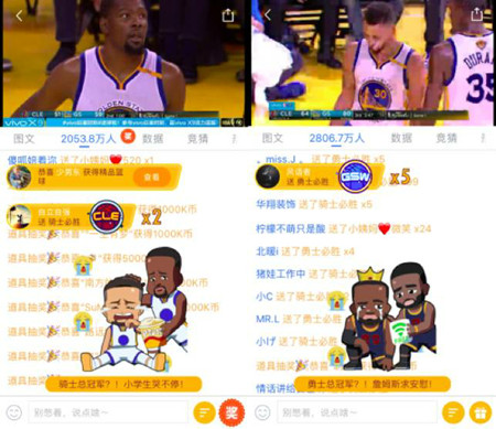 另外一個頗為“二次元”的直播互動形式就是彈幕了。“彈幕”文化飽含互動因子,能讓用戶真的感覺到“你不是一個人”!而騰訊體育獨創(chuàng)“熱血彈幕”模式,在NBA總決賽期間激活了年輕用戶的熱情,也讓更多的泛體育迷有機會進入體育的大門。