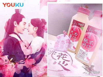 味全每日C果汁借勢推出《三生三世》定制桃花包裝,形成“桃花飲”,并印有劇中的經(jīng)典語句,作為新的賣點