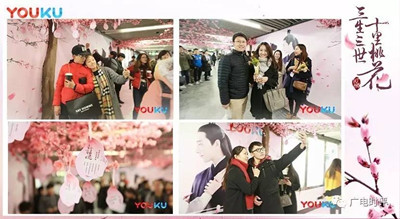 優(yōu)酷擅長運用各種方法令觀眾注意并沉浸在其宣推的內(nèi)容環(huán)境中。今年情人節(jié),北京地鐵四號線出現(xiàn)了一趟“桃花”專列,西單地鐵站被布置成了一個“桃花林”?!拔覀冏隽宋甯械脑O(shè)計,走到相應位置有桃花香,投影儀在地上投出動態(tài)桃花瓣,再加上桃花簽。因為是情人節(jié)嘛,我們鎖定晚上的熱點時間段,和鮮花品牌合作應景地送花。” 阿里大文娛大優(yōu)酷品牌創(chuàng)意高級總監(jiān)張薇說道。雖然只是一次場景化宣傳活動,但人們通過微信/微博等社交平臺進行了更為廣泛的二次傳播。