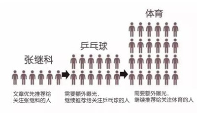 在對(duì)用戶行為的分析中,我們知道喜歡乒乓球的人不一定是張繼科的粉絲,而喜歡體育的人也不一定喜歡乒乓球。因此廣告會(huì)優(yōu)先推薦給更精細(xì)的標(biāo)簽級(jí)——即關(guān)注張繼科的人,以此來(lái)提高智能推薦的精準(zhǔn)程度。