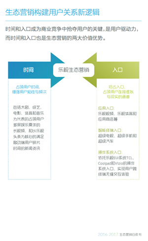 因此,在互聯(lián)互通的全球互聯(lián)網(wǎng)發(fā)展的大環(huán)境下,整個(gè)互聯(lián)網(wǎng)行業(yè)將迎來一個(gè)生態(tài)時(shí)代。任何一個(gè)細(xì)分領(lǐng)域單憑一個(gè)企業(yè)孤軍奮戰(zhàn)已經(jīng)行不通了,未來的競(jìng)爭(zhēng)將不僅僅局限于某個(gè)產(chǎn)品或者某個(gè)平臺(tái)的競(jìng)爭(zhēng),而是拓展到生態(tài)鏈各環(huán)節(jié)整合協(xié)同能力的競(jìng)爭(zhēng),因此在生殺予奪的商戰(zhàn)中,開放閉環(huán)生態(tài)圈,謀求與相關(guān)企業(yè)的合作共贏,開放用戶平臺(tái)資源成為了優(yōu)化生態(tài)系統(tǒng)的必經(jīng)之路。在這一視角下,樂視選擇“開放閉環(huán)生態(tài)系統(tǒng)”,邀請(qǐng)合作伙伴甚至競(jìng)爭(zhēng)對(duì)手一同構(gòu)建生態(tài)圈,提出“由垂直整合的閉環(huán)生態(tài)系統(tǒng)和橫向擴(kuò)展的開放生態(tài)圈共同構(gòu)成的完整系統(tǒng)”實(shí)為明智之舉。