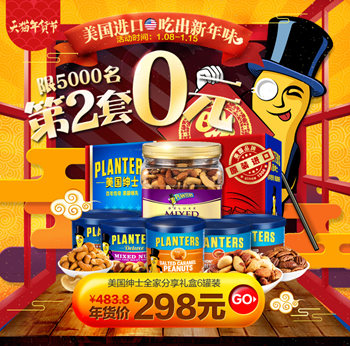 無獨(dú)有偶,堅(jiān)果類年貨市場中就有一個(gè)來自美國的堅(jiān)果品牌在天貓食品舉行的年貨節(jié)活動(dòng)中尤其引人注目,它就是Planters美國紳士堅(jiān)果。作為扎根美國本土的百年傳奇老字號(hào),美國紳士具有長達(dá)110年的專業(yè)烘焙歷史,早已成長為美國第一的堅(jiān)果品牌。全球年銷售額超10億美元,其中美國市場占有率就高達(dá)34.8%。如今,美國紳士強(qiáng)勢進(jìn)駐中國堅(jiān)果零食市場,今年在天貓平臺(tái)首次參加年貨節(jié),配合天貓食品年貨節(jié)打起營銷戰(zhàn)。年貨節(jié)活動(dòng)僅4天,美國紳士天貓旗艦店銷售額較日常高出518.6%