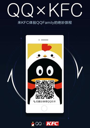 ??尤其在于合作雙方對(duì)年輕用戶的洞察,QQ與KFC的合作擁有了直擊受眾群的先決條件。一個(gè)是自1987年入駐中國大陸市場(chǎng)以來,就成為了中國年輕人生活社交的天然場(chǎng)所;一個(gè)是陪伴年輕人成長的最大網(wǎng)絡(luò)社交平臺(tái),8.77億的用戶中有六成都是90后。QQ這一次與KFC的合作將種年輕化、互聯(lián)網(wǎng)化、社交化、趣味化融為一體,十分吻合當(dāng)今受眾群體對(duì)趣味功能、優(yōu)質(zhì)內(nèi)容、年輕生活方式的期待。