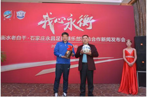石家莊永昌足球俱樂部常務(wù)副總經(jīng)理兼技術(shù)總監(jiān)李金羽在講話中也提到:2014年俱樂部正式更名為石家莊永昌足球俱樂部,當(dāng)年以中甲聯(lián)賽亞軍的身份獲得年中國(guó)足球超級(jí)聯(lián)賽的參賽資格,成為河北足球史上首支登上中國(guó)頂級(jí)職業(yè)聯(lián)賽的球隊(duì),是河北的驕傲。在俱樂部的升班元年,球隊(duì)取得了不錯(cuò)的戰(zhàn)績(jī),吸引了河北乃至全國(guó)企業(yè)的青睞。衡水老白干是河北白酒的代名詞,同樣也是河北的驕傲,我們與衡水老白干攜手是因?yàn)槲覀冇兄餐陌l(fā)展目標(biāo),要做各自行業(yè)里河北領(lǐng)域的標(biāo)桿,并在全國(guó)領(lǐng)域占得一席之地。