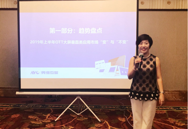 ??奧維互娛副總經(jīng)理宋麗敏女士首先分享了《2019年上半年OTT大屏垂直類業(yè)務(wù)市場的“變”與“不變”》,重點解讀了四點新變化。