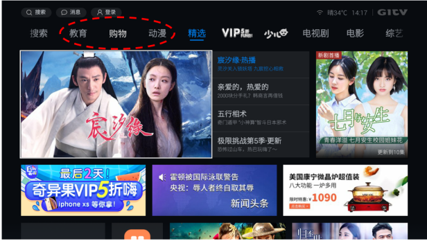 ??【變化1-入口路徑有明顯縮短】長期以來,OTT終端的桌面布局都是主推影視綜藝等節(jié)目為主,垂直類內(nèi)容板塊的入口都被藏得比較深。不過,上半年我們能夠比較明顯看到:已經(jīng)有越來越多的終端將垂直類內(nèi)容的入口菜單往前提,離用戶開機(jī)定格菜單越來越近。這方面,酷開和康佳的運營創(chuàng)新已經(jīng)走在了行業(yè)的前列。