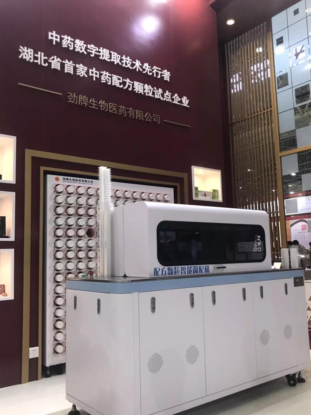 在勁牌公司的展位現(xiàn)場,一個全自動的龐然大物,吸引了不少人的目光。筆者詢問得知,這個大家伙是他們的“秘密武器”——中藥配方顆粒智能調(diào)配系統(tǒng)。只要把醫(yī)生開的處方輸入機器的屏幕,取出相應(yīng)的中藥配方顆粒放上傳送帶,就能智能調(diào)配劑量,3分鐘內(nèi),一盒盒搭配好的中藥配方顆粒就能配置成功,病人只要每次沖服一盒就可以了。
