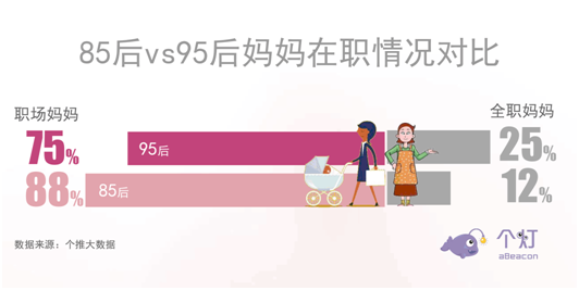 二、95后全職媽媽占比明顯高于85后媽媽
