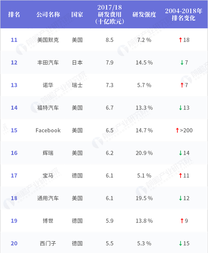 2018年全球企業(yè)研發(fā)投入排行榜(五)