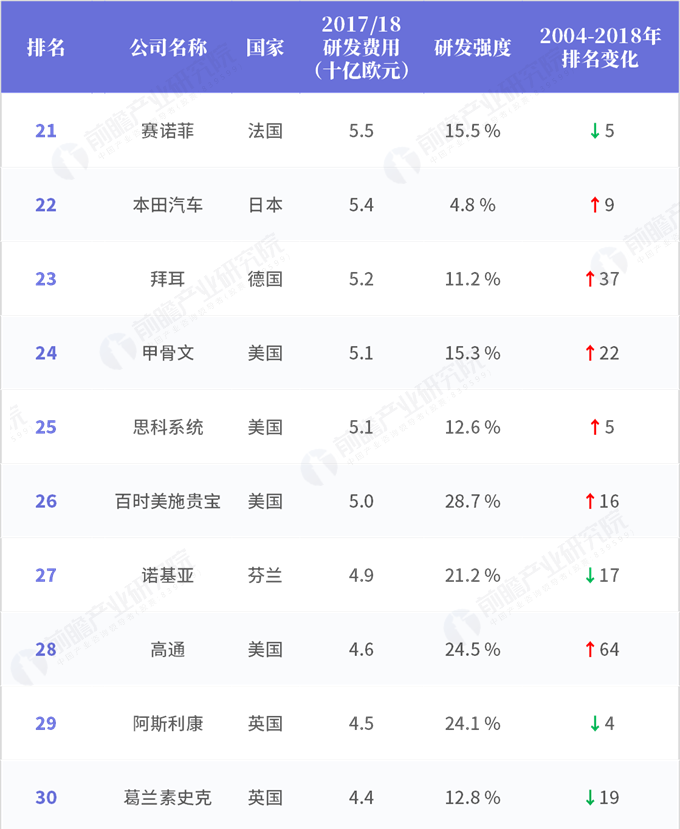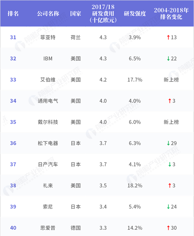 2018年全球企業(yè)研發(fā)投入排行榜(四)