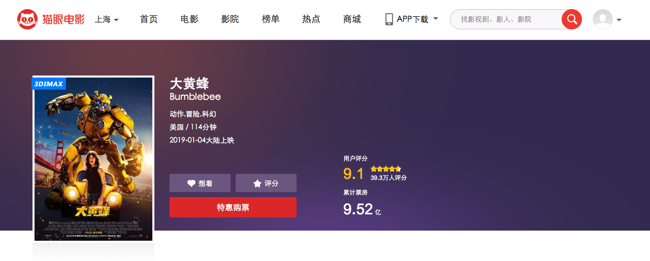 從變1到變5,《變形金剛》票房總成績(jī)接近40億美元。就在觀眾對(duì)邁克爾貝的爆炸美學(xué)審美疲勞,票房呈現(xiàn)下降之際,《大黃蜂》來(lái)了。