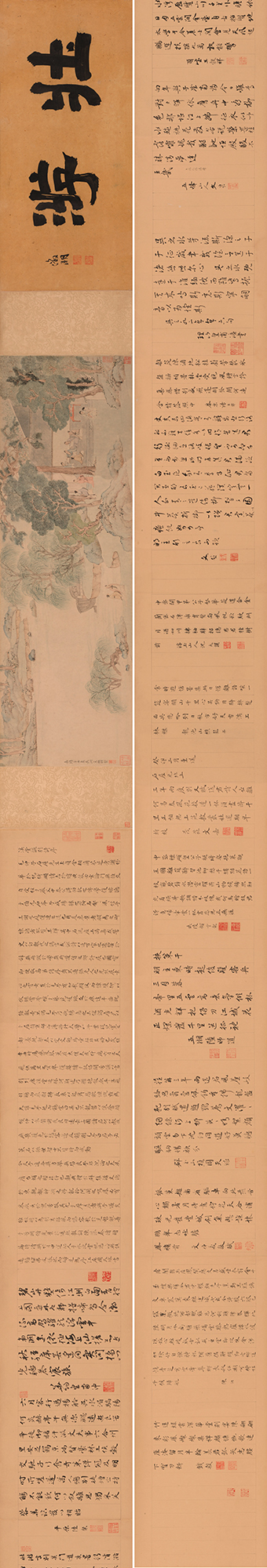 明代吳門繪畫是中國繪畫史上璀璨奪目的篇章,文征明作為吳門畫派的盟主,其詩文、書畫藝術(shù)水準無疑是那個時代的標(biāo)桿。本場我們爭取到過云樓顧文彬舊藏文征明《溪堂?別圖》卷,是一件令人矚目的作品。本卷是文征明為其弟子,也是毛珵之子毛錫嘏北上北京,雅集之后所作“送別圖”。毛錫嘏于嘉靖辛丑(公元1541年)夏貢入太學(xué),臨行吳門畫派眾人文征明、陸粲、“皇甫四杰”兄弟、周天球、王榖祥、文彭、文嘉、文伯仁、彭年、陸師道等吳門中堅16人酬唱作別,文征明作此圖,周天球作序記述因果,眾人作詩題跋?!八蛣e雅集”相對于其他形式的雅集來說,是一種更具有儀式感的聚會形式?!把偶敝笠娭T于圖文,是為“送別圖”,它在這個儀式感比較強的“雅集”中就成為了一種歷史的憑證,是類似于典禮中的終極圣物,所以文征明贈毛錫嘏《溪堂?別圖》卷是吳門盛宴之后的見證,是吳門畫派極具研究價值的畫作。此卷《溪堂?集圖》先后為明代朱之赤,清代查瑩,顧文彬、顧麟士祖孫先后遞藏,更顯得彌足珍貴。
