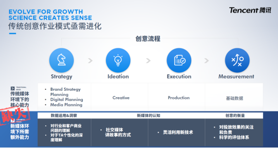 這一背景下,營銷也在面對全新的媒體環(huán)境。這使得過去的創(chuàng)意作業(yè)模式,在數(shù)據(jù)洞察與運用、新媒體認知,及創(chuàng)意成果的衡量上,出現(xiàn)了諸多能力缺失。張敏毅認為,創(chuàng)意勢必進行一次各項能力上的進化,來適應數(shù)字營銷時代的需求。