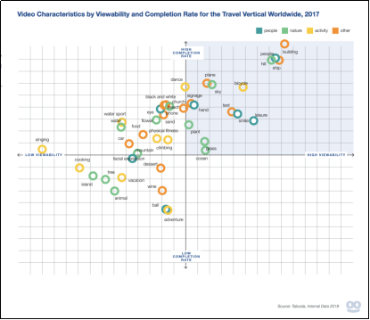 ▲2017全球旅游垂直領(lǐng)域廣告視頻主題對(duì)視頻曝光能力與完成率的影響