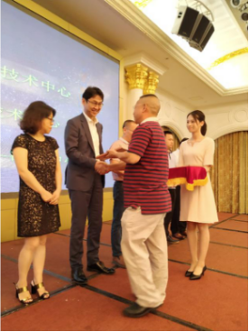 資生堂(中國(guó))研究開(kāi)發(fā)中心有限公司田村昌平總經(jīng)理在現(xiàn)場(chǎng)接受頒獎(jiǎng)