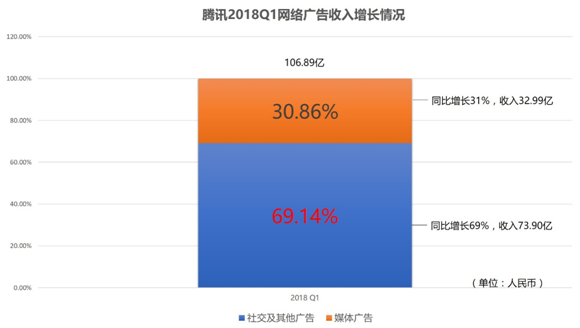 ▼騰訊2018年Q1財(cái)報(bào)網(wǎng)絡(luò)廣告收入增長(zhǎng)情況