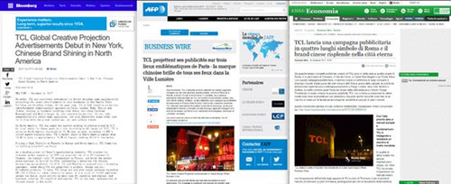 美國彭博社、法國新聞通訊社、意大利安莎社評價(jià)TCL全球投影事件