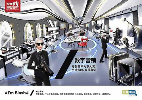 在寶尊最新的一組品牌廣告創(chuàng)意中,寶尊以“斜杠青年”的身份定位自己,數(shù)字營銷團(tuán)隊(duì)用創(chuàng)意創(chuàng)造銷售,用銷售額贏得嘉獎(jiǎng)。