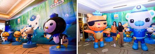 繼續(xù)走向會(huì)場(chǎng),來(lái)賓會(huì)路過(guò)《海底小縱隊(duì)》體驗(yàn)區(qū),充滿(mǎn)童趣的卡通設(shè)計(jì)和巨大玩偶,吸引來(lái)賓合影留念,《海底小縱隊(duì)》所代表的跨界IP營(yíng)銷(xiāo),也是本場(chǎng)發(fā)布會(huì)的一大主題。