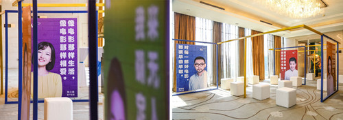 序廳的第三部分,是“電影夢(mèng)”主題區(qū)。萬(wàn)達(dá)傳媒五位普通員工的故事,被制作成巨幅海報(bào),傳遞著這家公司的電影夢(mèng)想,這個(gè)區(qū)域按現(xiàn)當(dāng)代美術(shù)館風(fēng)格設(shè)計(jì),觀眾可坐可立于其中,兼做休息交流區(qū)。其實(shí),這個(gè)主題區(qū)的畫(huà)面,將與開(kāi)場(chǎng)視頻呼應(yīng)。