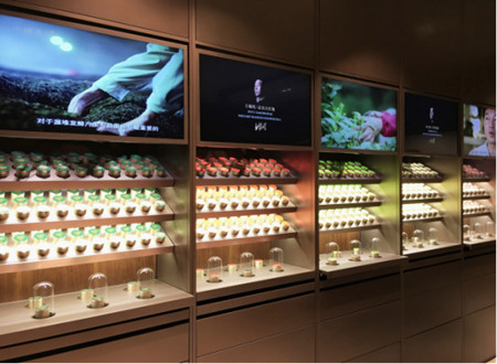 為了給消費者帶來更具場景化的消費體驗,小罐茶邀請了蘋果Apple Store御用設(shè)計師Tim Kobe操刀設(shè)計線下體驗店Tea Store,設(shè)計風(fēng)格一改以往中國茶店陳舊、老土的形象,小罐金屬啞光質(zhì)感斑駁交錯,店內(nèi)設(shè)計線條流暢,科技感與時尚感并存。