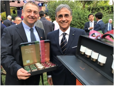 意大利駐華大使謝國誼先生(右)與小罐茶
