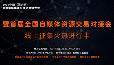 ??為解決以上營銷痛點,匯集行業(yè)內(nèi)最優(yōu)質(zhì)的線上線下廣告、新聞媒體、微視頻,以及微博、微信等自媒體,明星網(wǎng)紅、大V、意見領袖(KOL) 等100萬+新媒體資源,由全球領先的移動互聯(lián)網(wǎng)第三方數(shù)據(jù)挖掘和分析研究機構(gòu)艾媒咨詢集團主辦的2017中國(第六屆)大數(shù)據(jù)新媒體與移動營銷大會暨首屆全國自媒體資源交易對接會將于3月29日在北京新世紀日航酒店隆重舉行。
