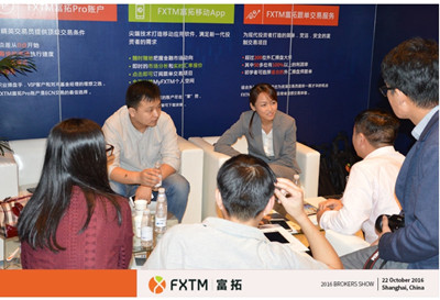 ? FXTM富拓隆重亮相2016上海在線外匯交易展,本次活動由中國進步最快的外匯門戶網(wǎng)站外匯110主辦。展會于10月22日如期舉行,交易員、投資者、企業(yè)家濟濟一堂。FXTM富拓展位前人頭攢動,眾多與會者咨詢產(chǎn)品與服務(wù)情況。