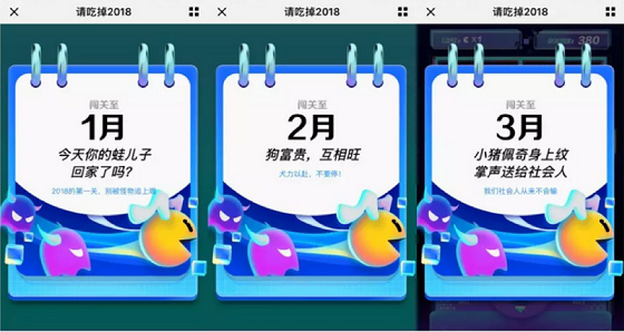 順著這種情感訴求,京東微信手Q購物在這年終之際,來了波“趣味懷舊”——《請吃掉2018》, 一款在站內(nèi)推出的雙12互動闖關(guān)游戲。