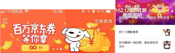 基于這一洞察,京東微信手Q購物與中信銀行共同發(fā)起12.12省錢還是花錢話題討論,形成了互動話題流量池。同時,與微眾銀行聯(lián)合定制用戶福利禮包,以精準(zhǔn)的產(chǎn)品利益點定位,實現(xiàn)有效跨界合作。