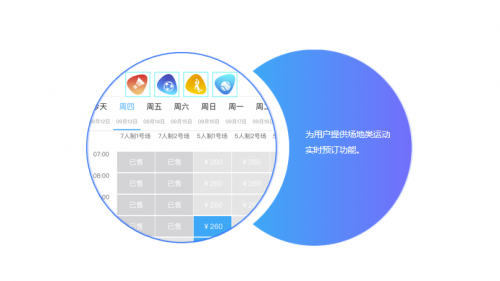 圖說:惠動平臺開發(fā)了運動訂場功能,不用去現(xiàn)場,不用打電話,動動手指,輕松實現(xiàn)羽毛球、足球、籃球、網(wǎng)球的預(yù)約訂場,就像訂電影票一樣簡單!