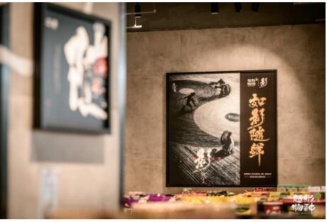 門店外墻用“如影隨鮮”的巨幅視覺展示了此次合作主題店的IP特性。進(jìn)入門店,映入眼簾的是充滿了東方古典韻味的用戶互動(dòng)區(qū),吊頂以油紙傘進(jìn)行懸掛點(diǎn)綴,配以水墨畫般的帷幔和極具禪意的古箏、屏風(fēng)、茶幾、落地?zé)簟T臺(tái)……各種《影》元素的擺件讓超級(jí)物種門店古典味道十足。