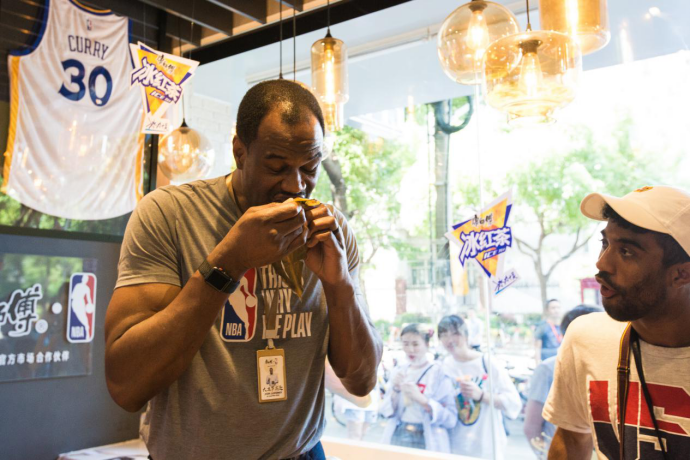 活動最后大衛(wèi)·羅賓遜對于此次活動給出了不俗的評價,無論是總冠軍主題店的布置還是今天的互動環(huán)節(jié)都很令他滿意?!拔覍χ袊蛎栽贜BA上表達(dá)出的熱情和支持充滿感激,十分感謝康師傅能給予我這樣的機(jī)會去回饋中國球迷們?;@球是需要許多人一起玩的運(yùn)動,希望大家都能參與其中,let`s Play!“