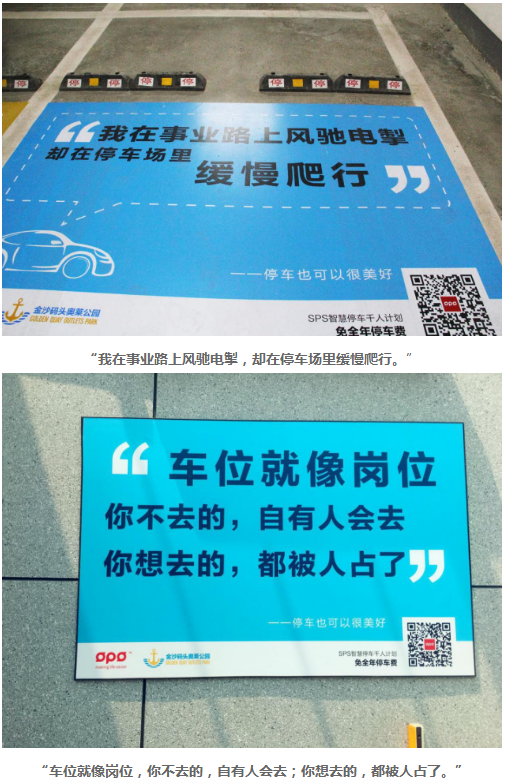 蜂擁而來的人,都在這些標語前停下了腳步,或是自嘲或是沉默。這個扎心的停車場,成功地吸引了這座城市的每一位車主,令每個人都對停車的不易而感同身受。