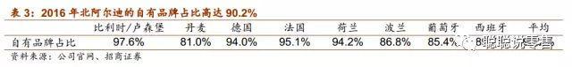自有品牌是奧樂(lè)齊所有商品的核心,自創(chuàng)立之始,奧樂(lè)齊始終堅(jiān)持自有品牌建設(shè)。2015年南奧樂(lè)齊的自有品牌占比已超過(guò)90%,2016年北奧樂(lè)齊的自有品牌占比平均已達(dá)90.2%。從效果上看,自營(yíng)品牌使進(jìn)貨價(jià)直接等于生產(chǎn)成本,剝離中間品牌商的利潤(rùn),有利于商品讓利消費(fèi)者。