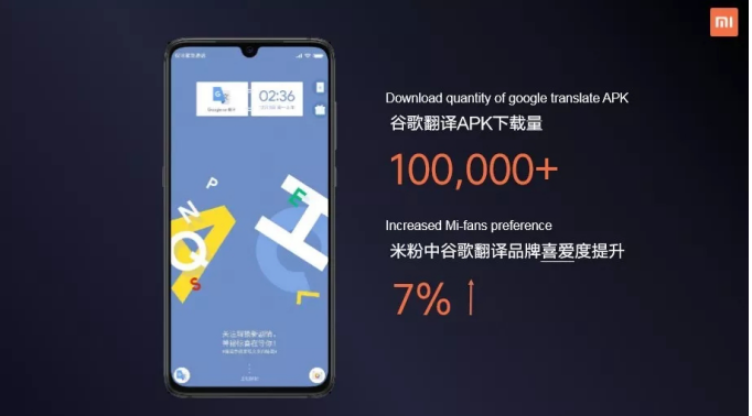 另一個案例則是小米營銷與谷歌翻譯的合作。這是一款超級方便的即時翻譯工具,不論國內(nèi)還是海外都能跨躍語言的障礙輕松溝通。小米營銷的創(chuàng)意團(tuán)隊(duì)打造了“谷歌翻譯專屬主題”,把產(chǎn)品和UI無縫融合在一起。為谷歌翻譯帶來10萬+的下載量。