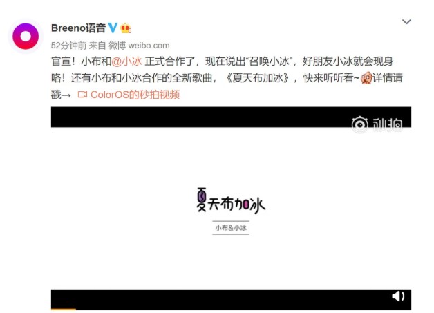 在宣布合作后,Breeno語音助理“小布”與微軟語音助理“小冰”還聯(lián)合推出創(chuàng)意趣味歌曲《夏天布加冰》,并在各大音樂平臺(tái)同步上線,讓此次合作在內(nèi)容宣傳方面錦上添花。