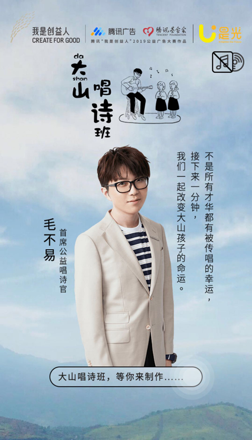 這兩天,無論是打開微信朋友圈、QQ音樂還是微博,你都可能看到這樣一張海報(bào):毛不易受邀成為騰訊公益平臺發(fā)布的公益項(xiàng)目——“大山唱詩班”的“首席公益唱詩官”,邀請全民加入,助力國內(nèi)首張全用戶制作的公益詩歌唱片。
