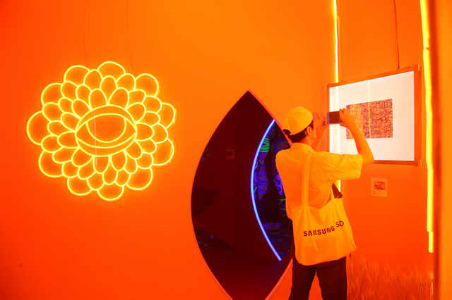 原來,這是剛剛開幕的“未來一公里”科技藝術(shù)節(jié),在《阿凡達》插畫藝術(shù)家Android Jones的“指揮棒”下,虹口北外灘從公平路到秦皇島路一段以“未來一公里”為主題打造了一個有趣的沉浸式球幕矩陣,讓觀眾一一探秘,感受多媒體的沉浸式實景體驗。