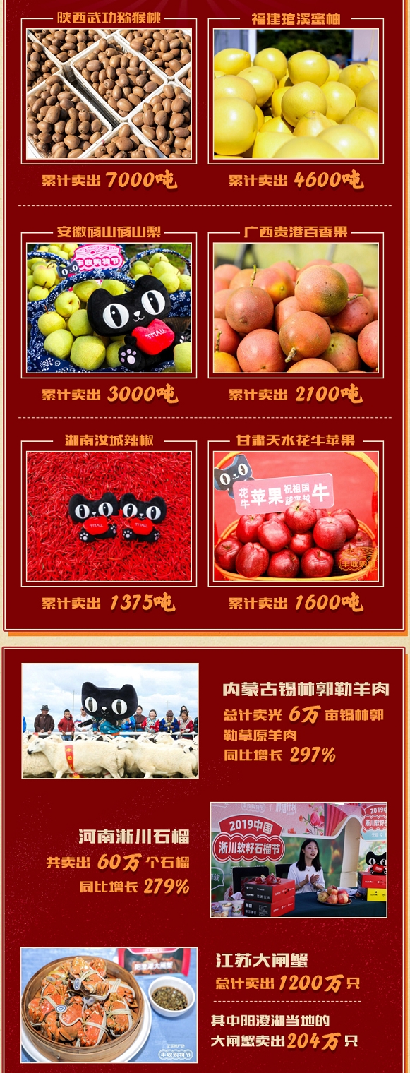 最終,本次2019阿里豐收購物節(jié)取得了亮眼的成績。據(jù)統(tǒng)計,整個活動期間,阿里線上總成交破171億,買家數(shù)達(dá)1億,全國各地還有多個豐收原產(chǎn)地一舉晉身為千噸俱樂部。