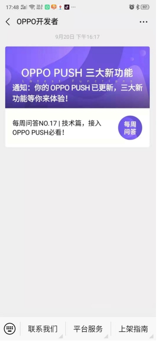 OPPO開發(fā)者公眾號內(nèi)容推送截圖