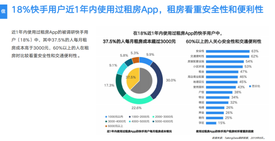在網(wǎng)服行業(yè)“行”的領(lǐng)域,一線、新一線城市表現(xiàn)出職住分離的現(xiàn)象。從城市居民出行目的地分布看,工作商務(wù)和休閑娛樂(lè)成為出行的主要目的,分別占比39%和31%。同時(shí),快手用戶表現(xiàn)出不僅依賴打車出行,也注重環(huán)保低碳出行。
