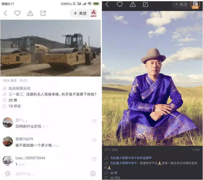在這里,真實的“人”和“內(nèi)容”使快手被寄予更多信任。快手用戶、達人都有著自己獨特的溝通方式、溝通語言,無論是“高大上”,還是“沙雕土潮”,真實是關(guān)鍵,增長是主題。例如,被華盛頓郵報報道過的“廢材愛迪生”,在YouTube動輒百萬級播放量的快手達人“手工耿”,“耿哥出品,必屬廢品”是他的標(biāo)簽,但卻透露著生活化的真情實感和意想不到的轉(zhuǎn)化效果。在某個汽車品牌找到耿哥進行直播時,耿哥拿著工具在汽車上敲打卻沒有坑印,這種非常原生態(tài)的溝通方式和呈現(xiàn)形態(tài),代替了品牌的“自說自話、自賣自夸”,把用戶當(dāng)做一個對等的溝通對象,最終收獲了不錯的品牌曝光和用戶互動。